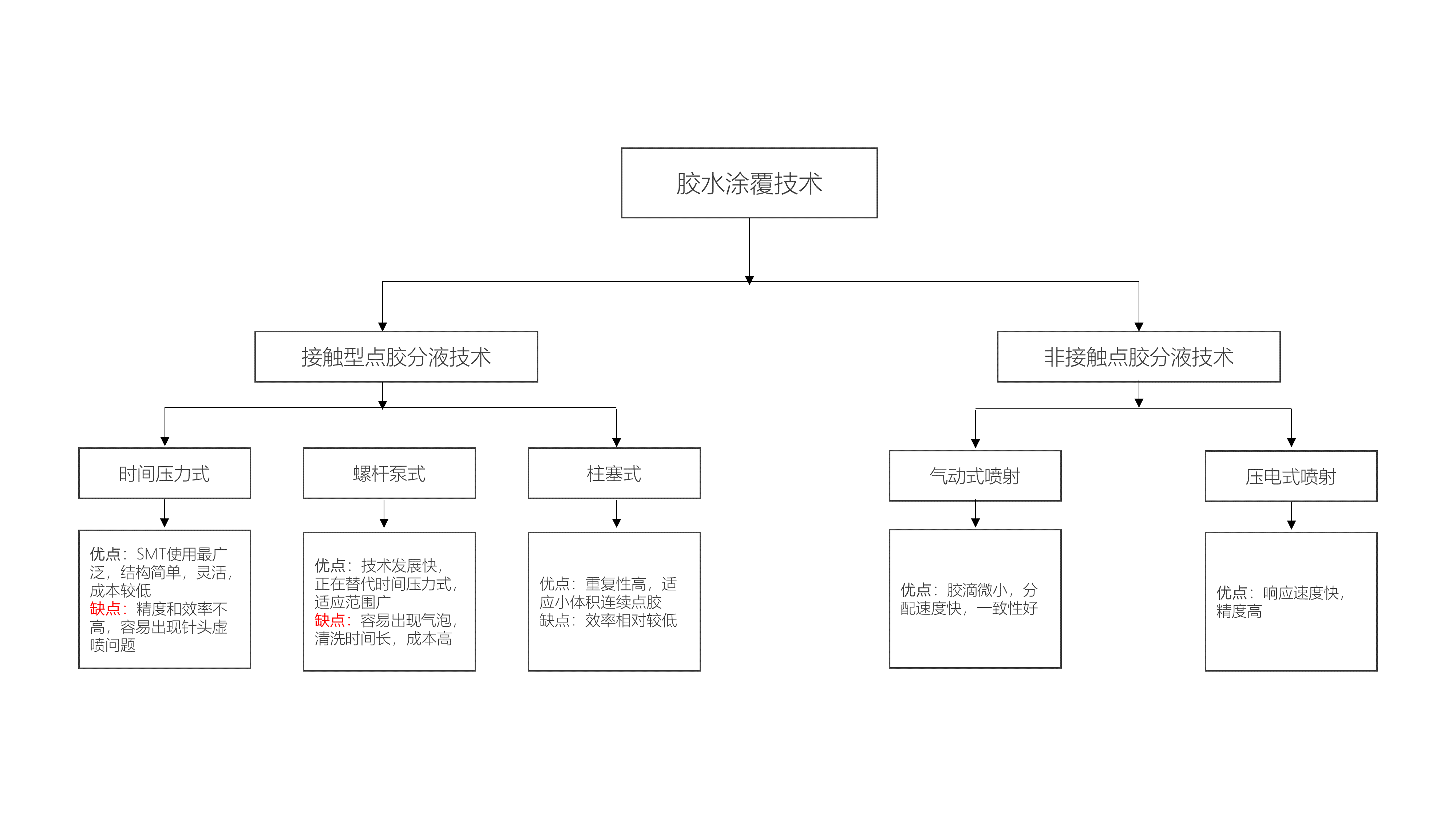 微電子封裝工業中主要有點、線、面三種點膠涂覆技術,即可分為接觸式點膠、非接觸式點膠。
